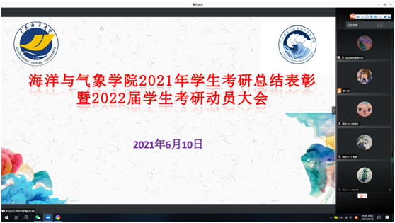 6月10日上午,优直播 在腾讯会议室召开2021年学生考研总结表彰暨2022届学生考研动员大会,优直播 党委书记陈晓,院长谢玲玲,副书记刘宏英,副院长陈法锦、郑少军和系领导、班主任、辅导员以及各年级有考研意向的学生和考研录取学生150多人参加了会议。会议由刘宏英主持。