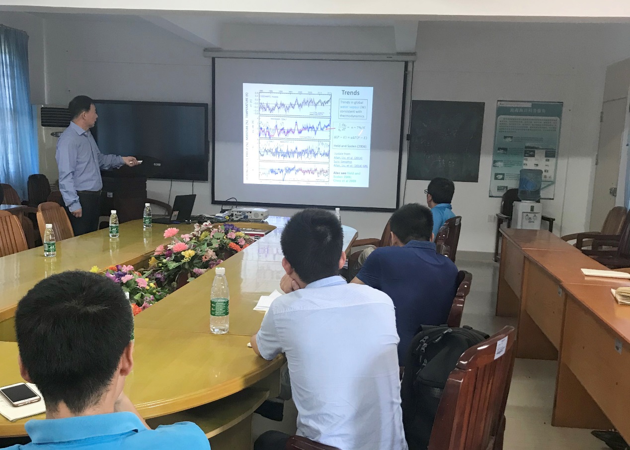 应我校南海海洋气象研究院邀请,7月4日,英国雷丁大学气象系刘春雷教授对我校进行了学术访问,并于海博楼210会议室做了题为《地气系统的能量平衡和水循环变化》的报告。会议由研究院院长徐建军教授主持,本院教职工及研究生聆听了报告。