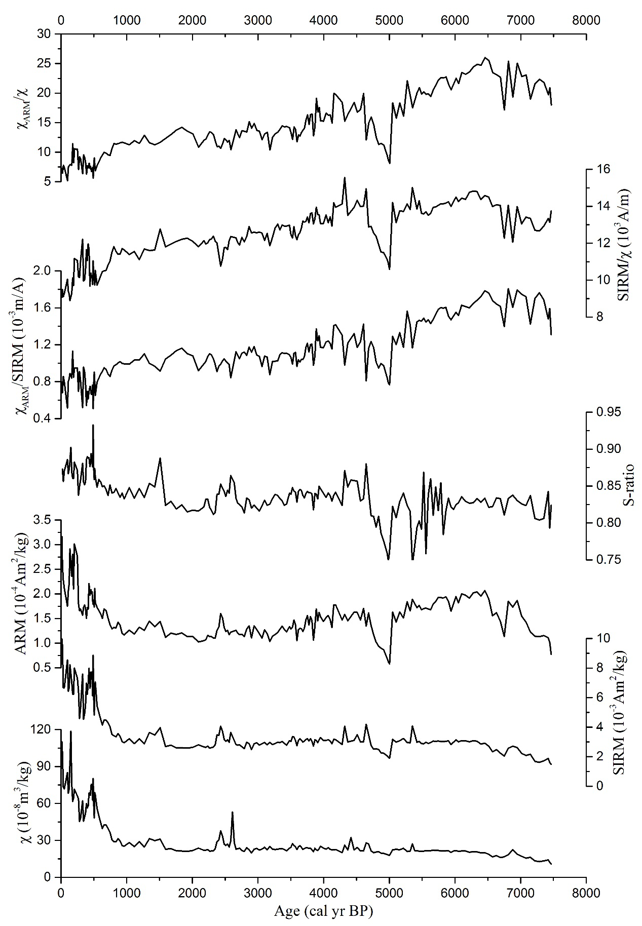 图3 YJ Core岩芯环境磁学参数的时间变化序列