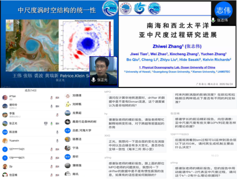 谢玲玲院长主持,本校部分师生及河海大学、中科院深海所、自然资源部第二海洋研究所等单位师生参加,最高在线人数超过两百人。