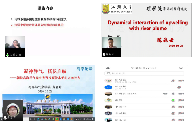 海洋研究所研究员、国家优青张国良老师以及汕头大学海洋科学研究院的陈兆云教授,同时和我院的方杏芹教授都作了十分精彩报告。论坛由陈法锦院长主持,采用线上进行的方式,优直播