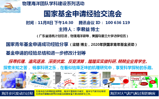 物理海洋学科团队召开“国家基金申请经验交流会”。会议由李君益老师主持,优直播