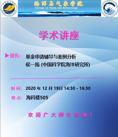 中国科优直播 海洋研究所侯一筠研究员应邀作学术讲座(预告)