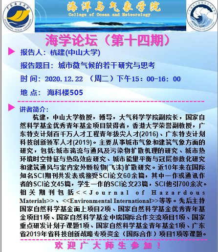 中国科优直播 海洋研究所侯一筠研究员应邀为优直播 师生作学术报告