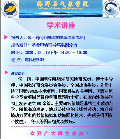 中国科优直播 海洋研究所侯一筠研究员应邀作学术讲座(预告)
