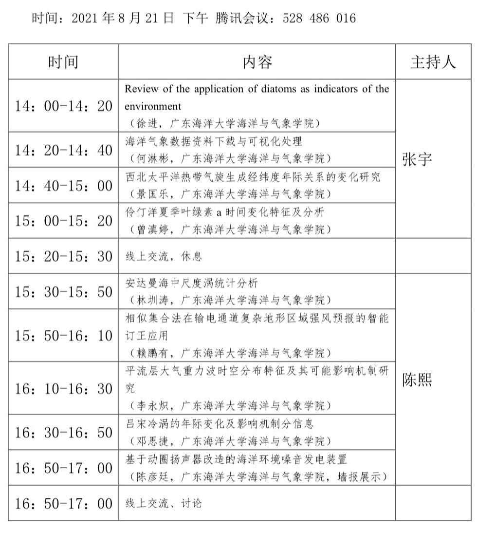 上午汇报人员大多是来自国内高校如厦门大学、浙江海洋大学、优直播-英超直播优直播的本科生、研究生以及博士生。他们为大家带来了精彩的报告。