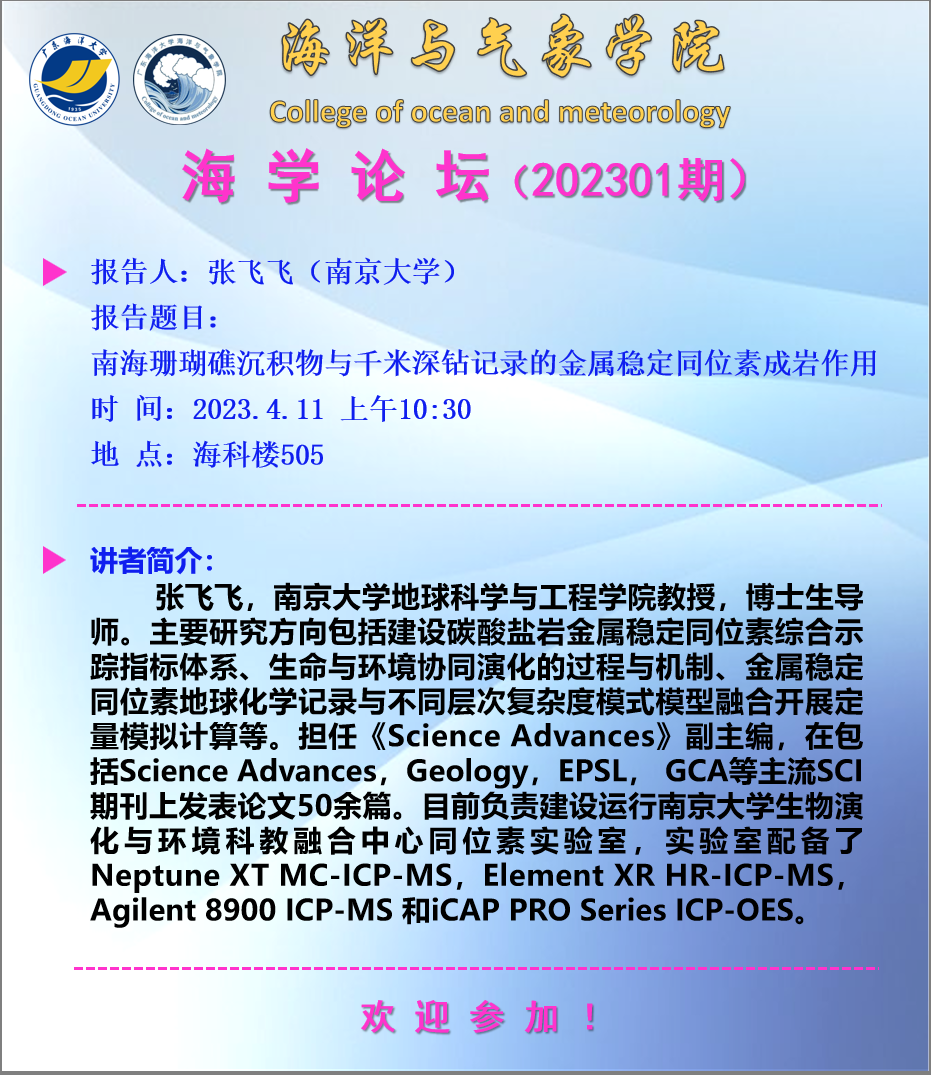 【学术报告通知】优直播 “海学论坛”(202301期)