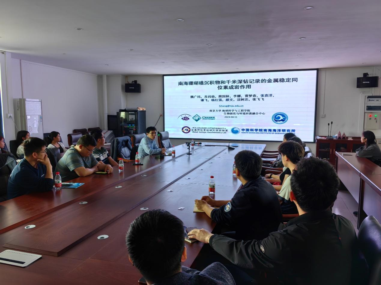 张飞飞教授在海科楼505作了题为《南海珊瑚礁沉积物与千米深钻记录的金属稳定同位素成岩作用》的学术报告。报告由我院包创老师主持。
