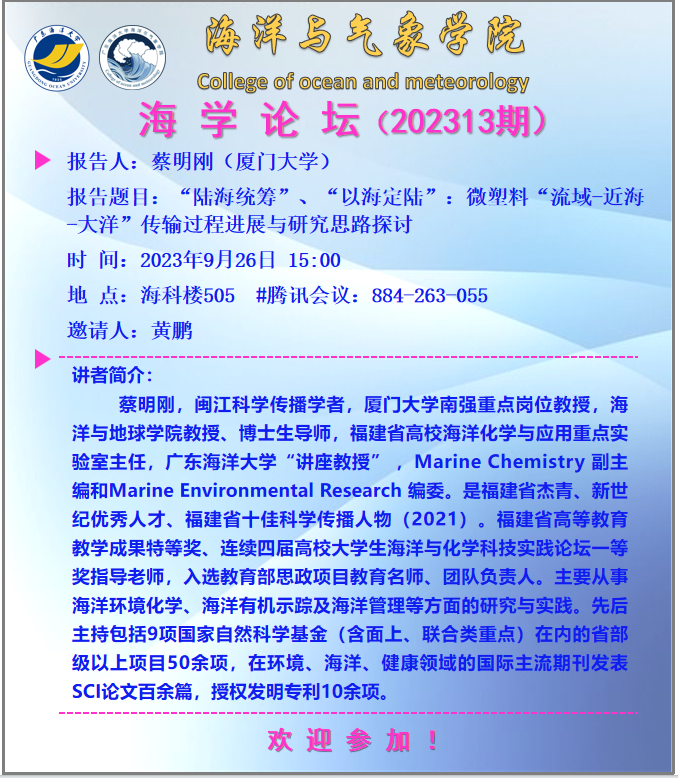 【学术会议通知】优直播 “海学论坛”(202313期)
