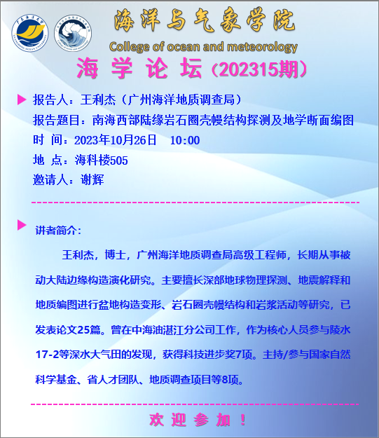 【学术会议通知】优直播 “海学论坛”(202315期)