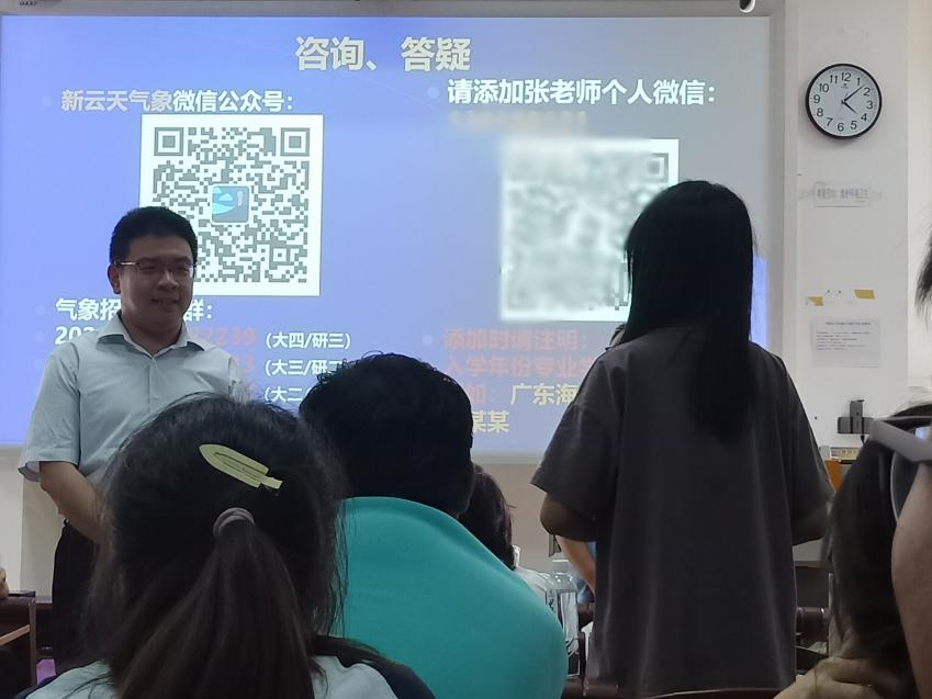 会议结束后,张宇老师对本次报告做了简单的总结。同学们就报告内容积极与张夏琨老师进行讨论,老师也详细地回答了同学们提出的问题,同时给予同学们一些考研和实习上的建议。此次报告使广大师生对大气科学专业业就业有了更好的了解,让同学们对今后的职业规划有了清晰的认识,提供了一个交流的平台,现场气氛活跃,学术氛围十分浓厚。