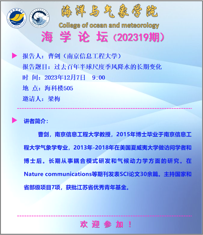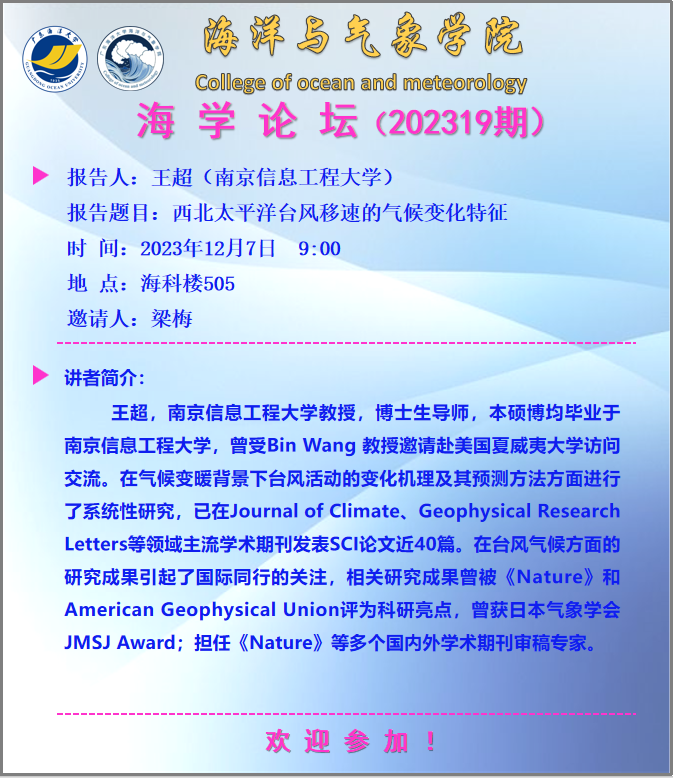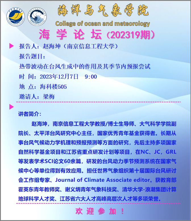 【学术会议通知】优直播 “海学论坛”(202319期)
