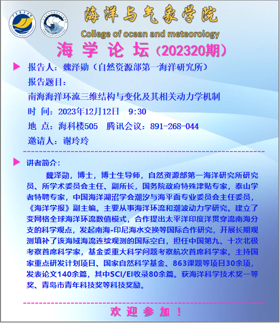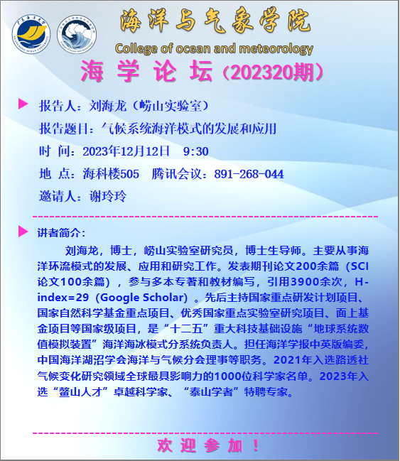 【学术会议通知】优直播 “海学论坛”(202320期)