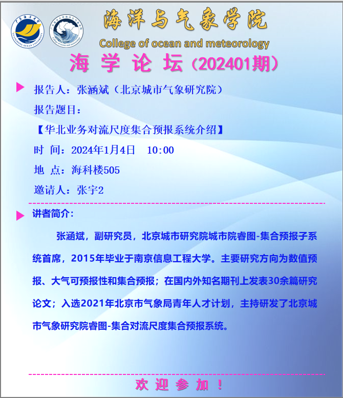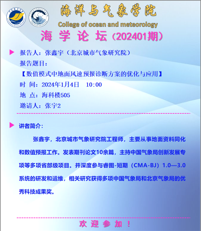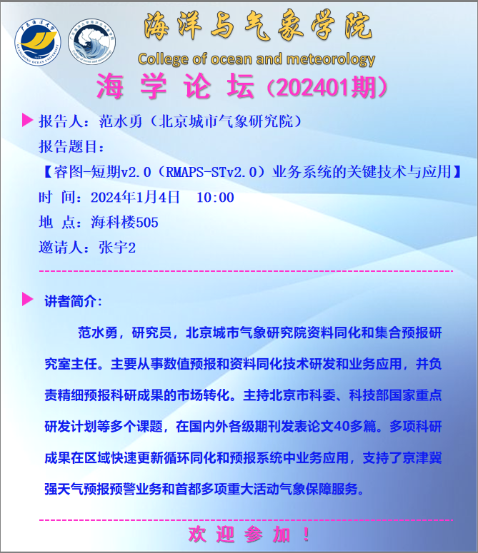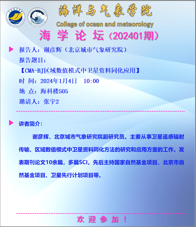 【学术会议通知】优直播 “海学论坛”(202401期)