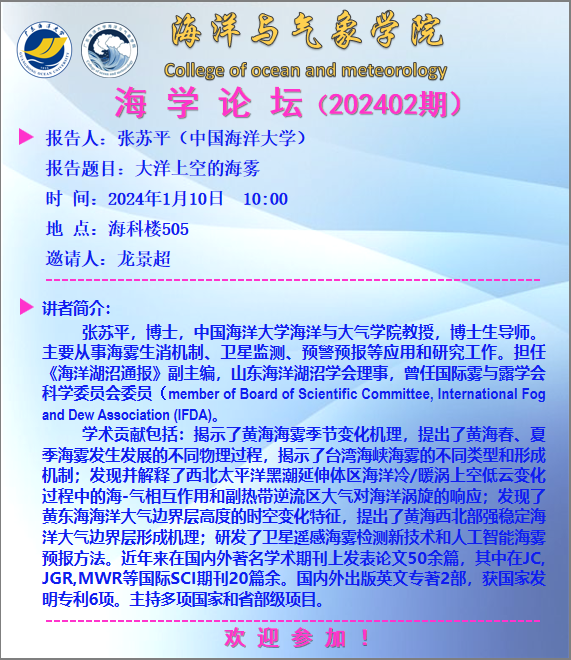【学术会议通知】优直播 “海学论坛”(202402期)