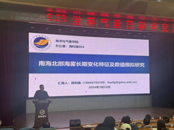 韩利国博士分别就《广东台风海洋预报业务和技术》、《湛江海洋牧场主要养殖品种和海洋气象关系》和《南海北部海雾长期变化特征及数值模拟研究》进行了报告,杨首席深入剖析了台风路径、强度以及降水等关键技术的最新进展,叶教授介绍了湛江海洋牧场的建设背景、现状以及主要养殖品种,并深入探讨了气候因素对海洋渔业生物的关键影响,韩博士分析了南海北部海雾的时空变化特征和年代际特征,展示了南海海雾研究的最新成果。
