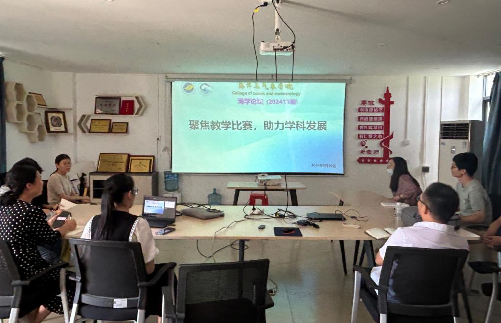 举行了2024年第13期海学论坛,本次论坛邀请到入围广东省第七届高校(本科)青年教师教学大赛决赛的本院青年教师宁浩,在海科楼313会议室与大家展开以“聚焦教学比赛,助力学科发展”的教学研讨。研讨由我院侯庆华副院长主持,来自优直播