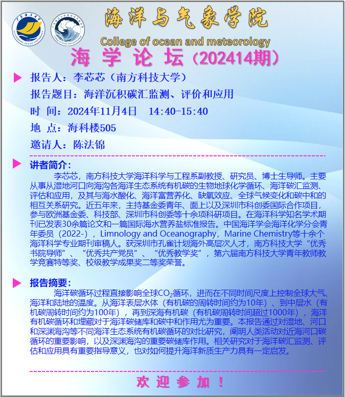 【学术会议通知】优直播 “海学论坛”(202414期)