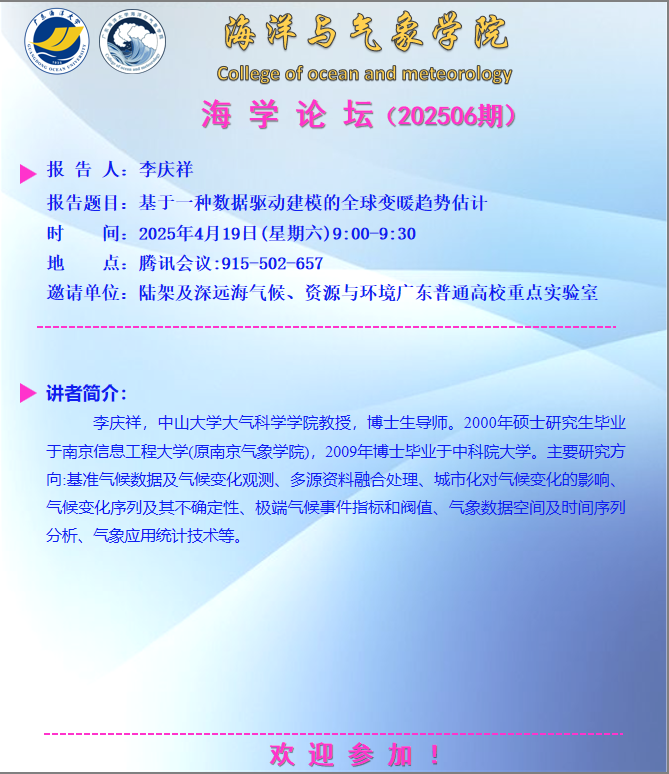 【学术会议通知】优直播 “海学论坛”(202506期)