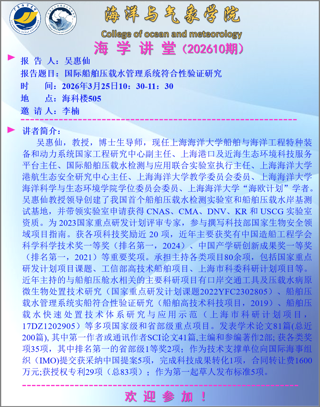 【学术会议通知】优直播 “海学讲堂”(202610期)