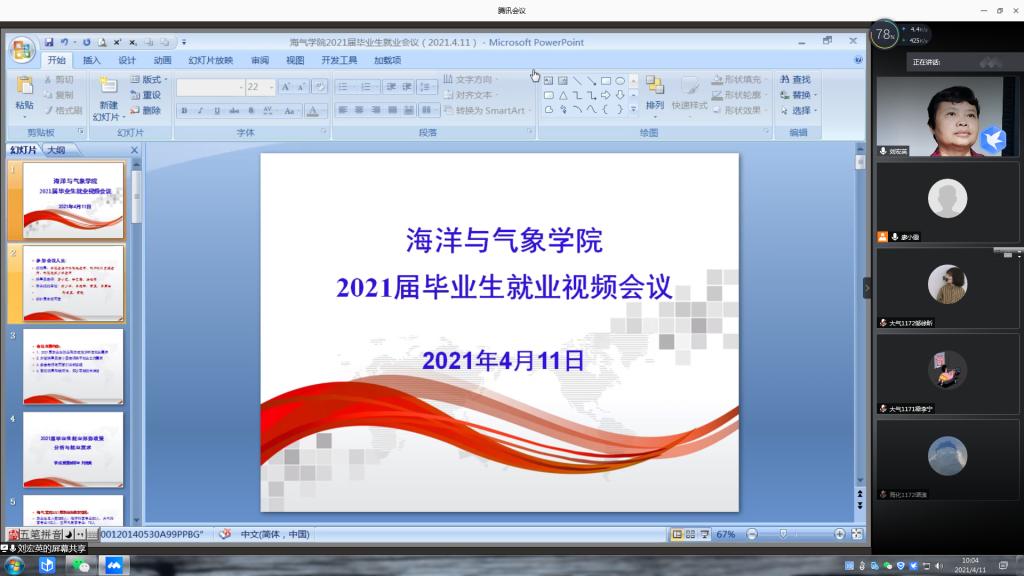 4月11日上午,优直播 在腾讯会议室召开2021届毕业生就业动员视频大会,部分院(系)领导、全体辅导员、全体毕业班班主任以及2021届全体毕业生参加会议,会议由优直播 党委副书记刘宏英主持。