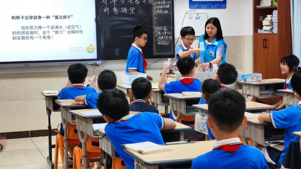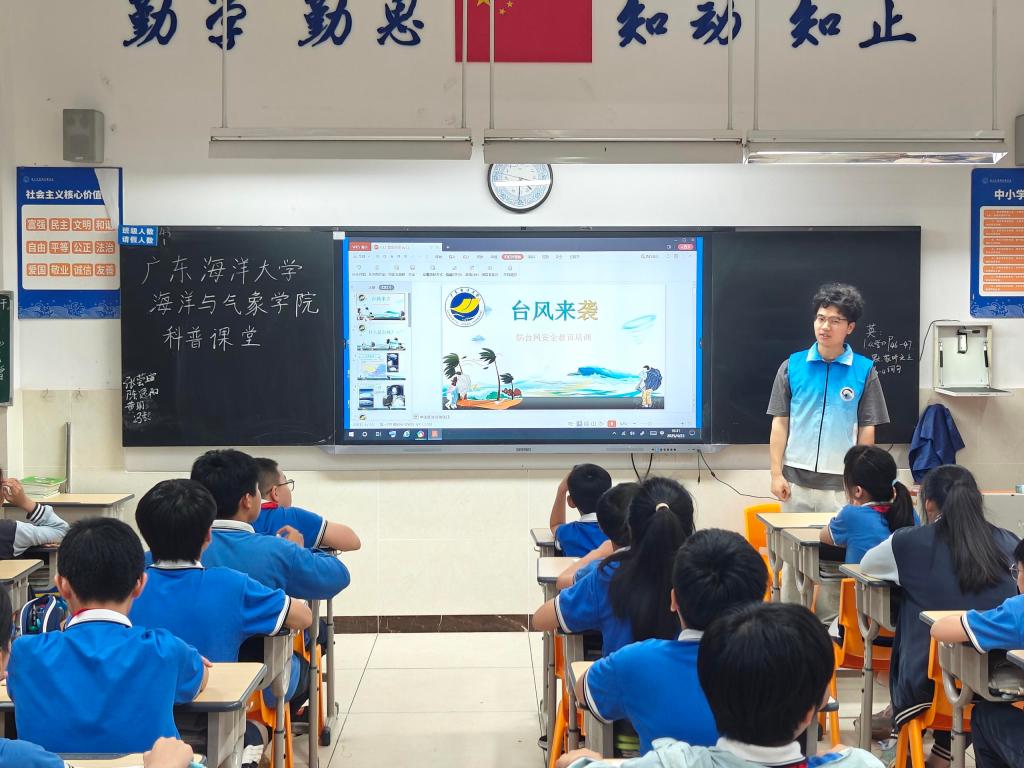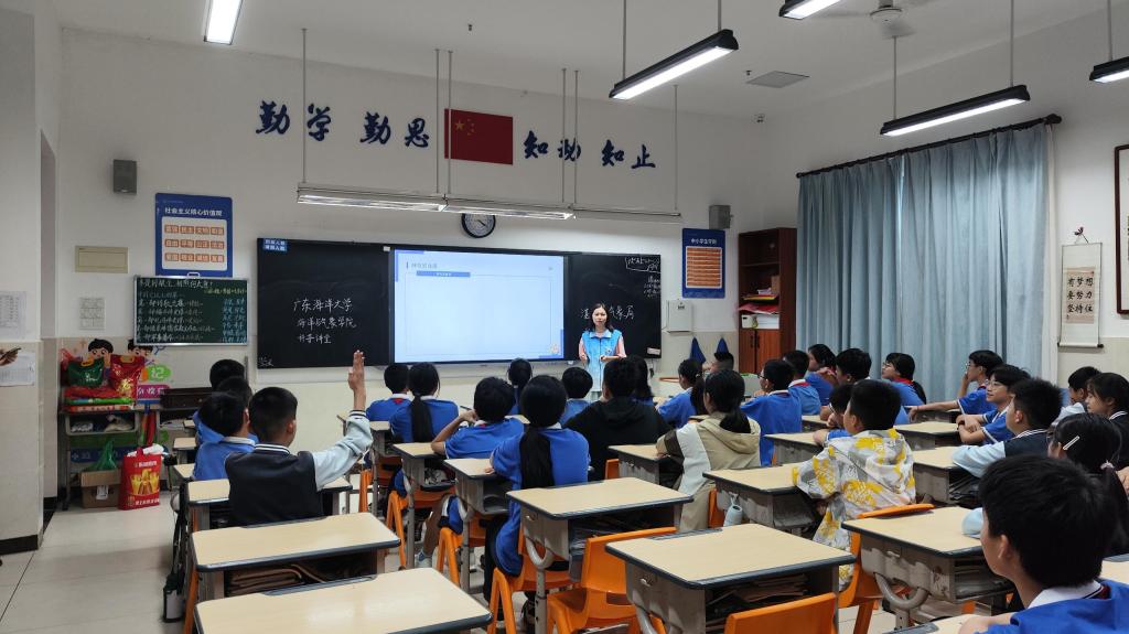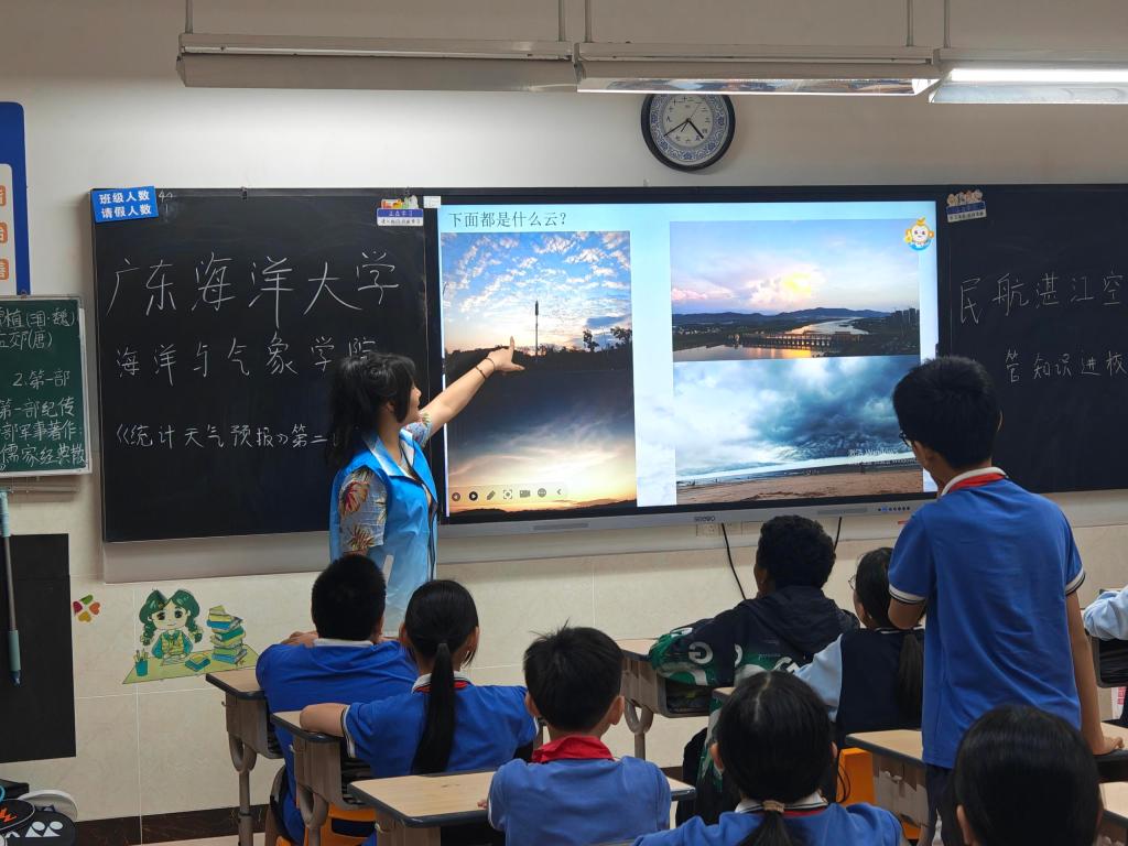团委组织30余名大学生志愿者走进湛江市雷阳实验学校,开展“海洋大气”科普进校园活动。通过科普讲堂、实验互动体验、海洋知识问答、天气符号知多少等多种形式,为五年级和六年级共630余名小学生带来沉浸式科学启蒙,助力“双减”政策下科学教育提质增效。