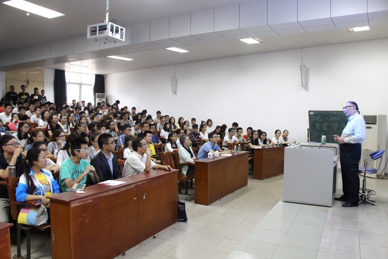 报告会上,李院士向同学们介绍了全球海温的一些主要模态,如太平洋海温、印度洋海温、大西洋海温主要模态,以及太平洋-印度洋海温联合模态,并从不同模态对全球气候影响做了讨论。报告结束后,陈院士与老师和学生进行了互动交流,现场气氛活跃。