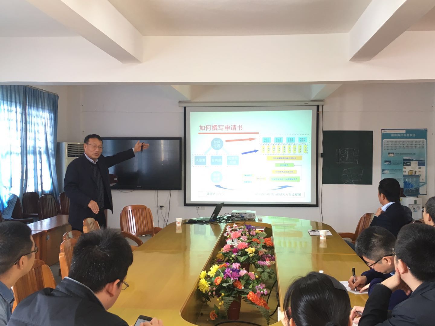 在海博楼会议室为年轻教师开展了国家自然科学基金撰写指导讲座。中科院海洋所侯一筠研究员做了专题指导讲座。优直播