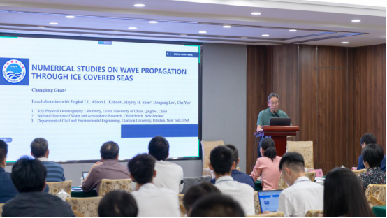 南海海洋研究所王春在研究员、河海大学齐义泉教授、南京信息工程大学何宜军教授、厦门大学陈敏教授、南方科技大学刘青松教授、中山大学王静教授、北京大学钱维宏教授、华东师范大学李道季教授、浙江大学孙永革教授、国家卫星海洋应用中心徐莹研究员进行现场或线上学术交流和指导,我校海洋科学学科各方向负责人、骨干教师、研究生和本科生在现场或线上参加了会议。