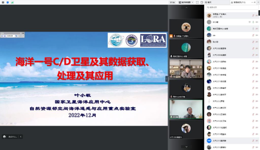 于腾讯会议平台开展线上《研究生联合培养系列讲座》,邀请联培基地研究生导师,国家卫星海洋应用中心徐莹处长、叶小敏研究员为联合培养研究生及在校本科生做我国海洋卫星遥感监测及应用方面的工作介绍。