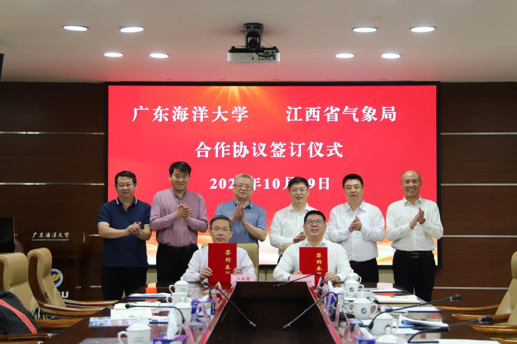 10月19日上午,我校与江西省气象局全面合作协议签字仪式在湖光校区行政楼五楼会议室举行,江西省气象局党组书记、局长傅敏宁、我校党委书记杨洲出席仪式并讲话。江西省气象局二级巡视员何财福、我校副校长谭北平代表合作双方在协议上签字,江西省气象局人事处、科技与预报处、办公室、高质量发展办、气象科学研究所,我校党办、人事处、科技处、创新科技研究院及优直播