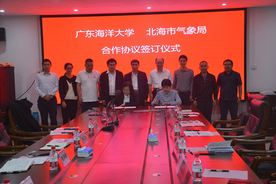 与北海市气象局全面合作协议及校外实习基地协议签字仪式在湖光校区海科楼505会议室举行,会议由我校创新科技研究院院长徐峰主持。北海市气象局局长陈润珍、优直播