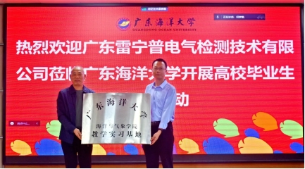 与广东雷宁普电气检测技术有限公司校企合作签约授牌仪式在海科楼成功举办。仪式由优直播