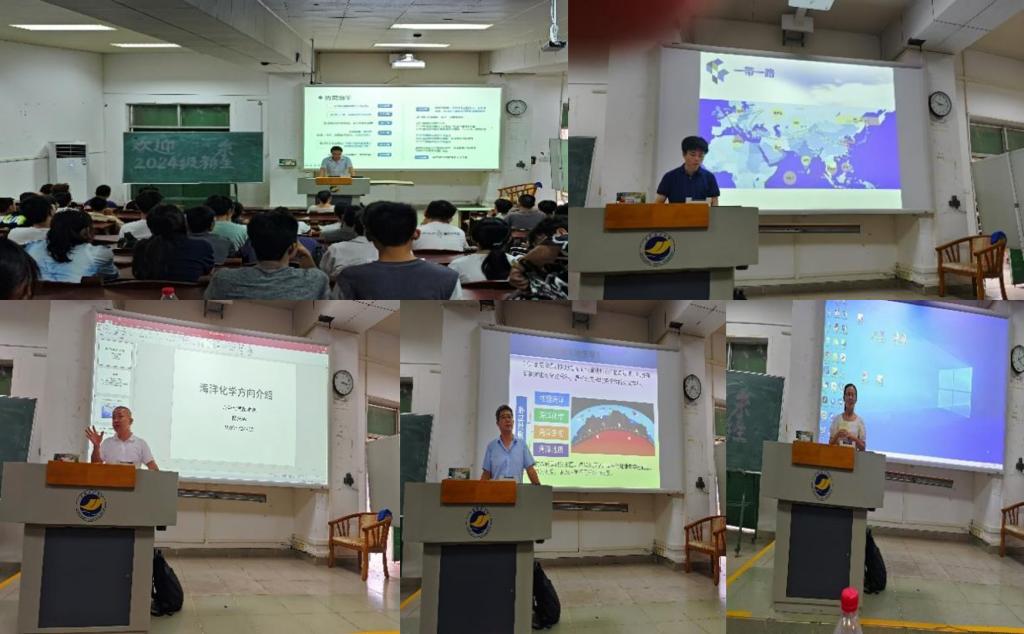 副院长郑少军、陈法锦教授、海洋科学系主任谢辉、副主任杨丽娜、孔德明副教授、周凤霞博士和史荒原博士以及全体2024届海洋科学专业新生参加了大会。