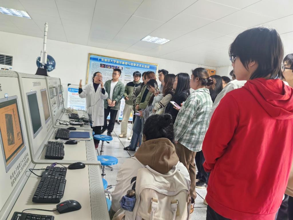 同学们接下来参观了“全国海洋科普教育基地”-优直播-英超直播优直播海洋遥感与信息技术实验室。参观过程中,工作人员首先介绍了卫星遥感技术的基本原理及其在海洋科学研究中的重要性,随后工作人员详细讲述了遥感实验室的发展历程,以及实验室数据来源、数据接收、数据整理、数据分析的具体过程,还展示了实验室在南海海洋资源探索、海洋环境监测以及生态变化等研究方面做出的重要成果。通过工作人员的讲解,同学们了解了遥感技术在海洋生态系统监测和海洋环境监测等方面的重要作用,也认识了卫星数据接收系统、数据处理服务器和遥感图像处理软件的基本工作原理,使学生对遥感数据分析有了更直观深入的认识。