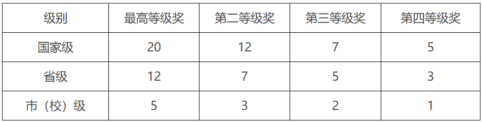 Ⅱ类:奖项完成者中排名第一的学生加分标准如下: