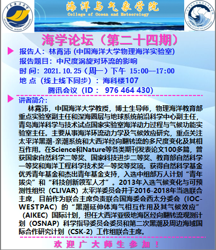 【学术会议通知】优直播 “海学论坛”(第二十四期)