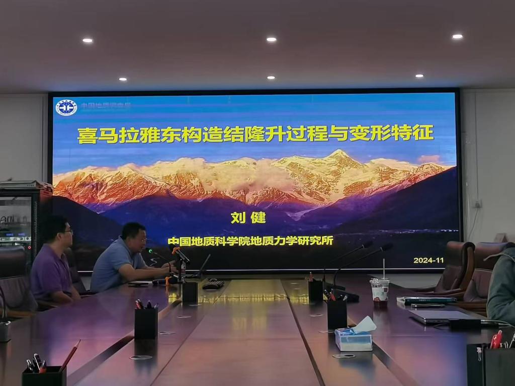 2024年11月13日下午,优直播 举行了2024年第15期海学论坛,本次海学论坛邀请了中国地质科优直播 地质力学研究所第四纪地质和生态与气候研究室主任刘健老师(研究员)在海科楼505会议室为大家带来喜马拉雅东构造结隆升过程与变形特征的学术报告。参加本次论坛的人员包括优直播 的孔德明、包创、武力等老师与多名海洋地质专业本科生。会议由我院武力老师主持。