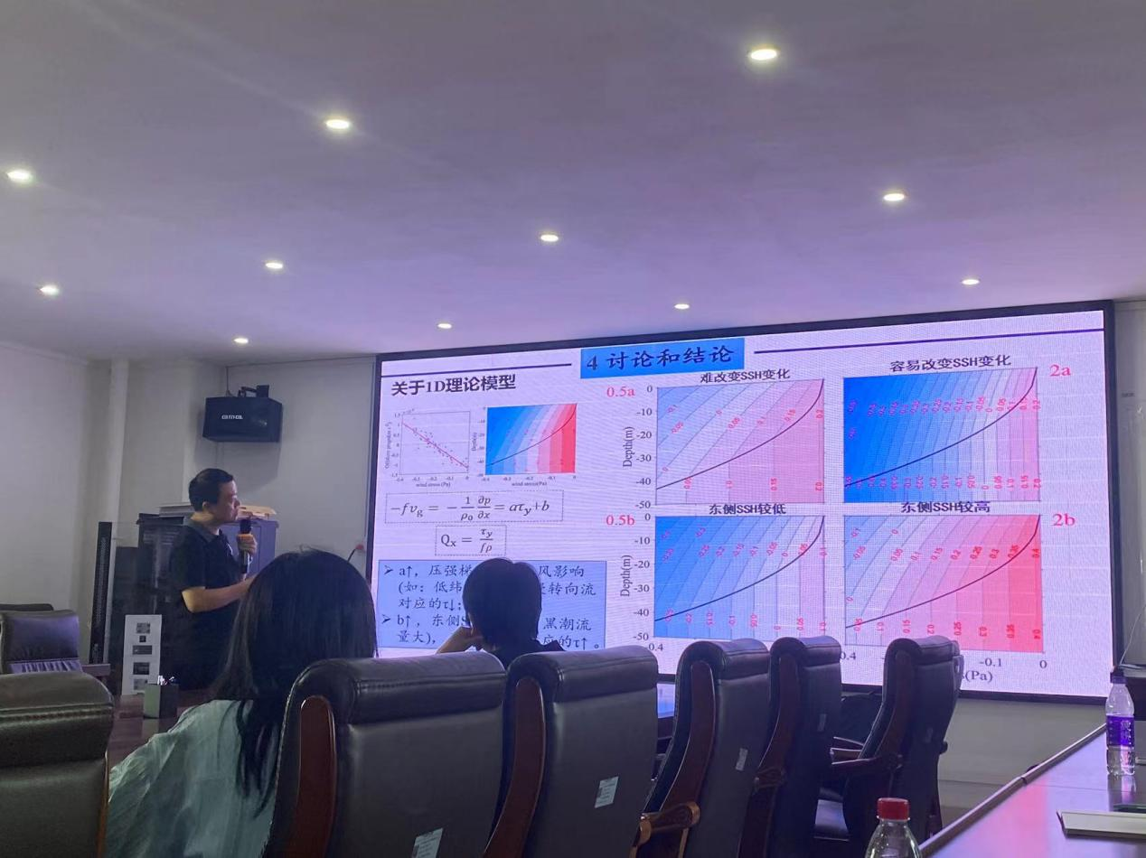 首先,宗晓龙老师系统介绍了台湾海峡对黑潮入侵的几个影响因子,再分析了台湾海峡剖不同深度的海水进入陆架的流场,尤其是跨200m等深线进入陆架的流场,其流向与风、SSH的相关性高。最后分析了黑潮的热量和湿气输送对区域气候和天气模式有重要调节作用,可能影响台湾及周边地区的冬季天气条件。此次会议增长了师生对于冬季黑潮的前沿知识的认知。