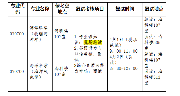 各专业复试时间地点安排: