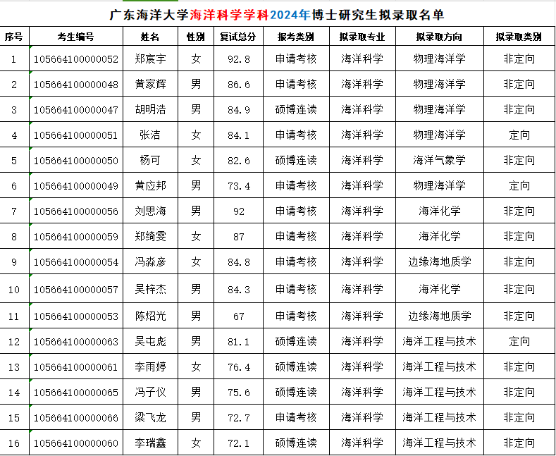 根据优直播-英超直播优直播2024年博士研究生招生考试和录取工作方案、海洋科学学科2024年博士研究生招生考试工作方案,现将海洋科学2024年博士招生复试成绩及拟录取结果予以公示(见下图),公示期为10个工作日,即从2024年5月14日-5月28日。公示期内如有异议,请以真实姓名书面向海洋科学学位点建设委员会反馈。
