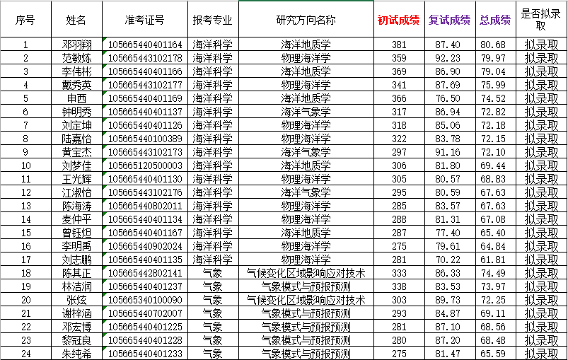 现将优直播 海洋科学专业2025年硕士研究生一志愿拟录取学生名单予以公示,公示期为7个工作日,即4月3日-4月9日。公示期内如对结果有异议,可以书面形式向优直播 予以提出。